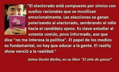 Repetimos una pequeña parte del posteo anterior. Estas lineas no apuntan a deconstruir a Macri. Aquí solo intentaremos leer la estrategia duranbarbista no a través del Pato Donald de Dorfmann/Mattelart sino comparándola con las sugerencias del general Petraeus, es decir: ver la campaña electoral y la comunicación PRO-Cambiemos desde la óptica de un escrito rudimentario de antropología aplicada y bajada de linea para consumo de militares en operaciones en teatros calientes. Es decir, apenas un ejercicio presuponiendo que ni los generales PRO ni los militantes están por sobre la media de mediocridad que campea en la dirigencia argenta... -"Desde la recuperación democrática, nunca se vió una campaña electoral más berreta, falta de ideas y abundancia de operaciones sucias como ésta